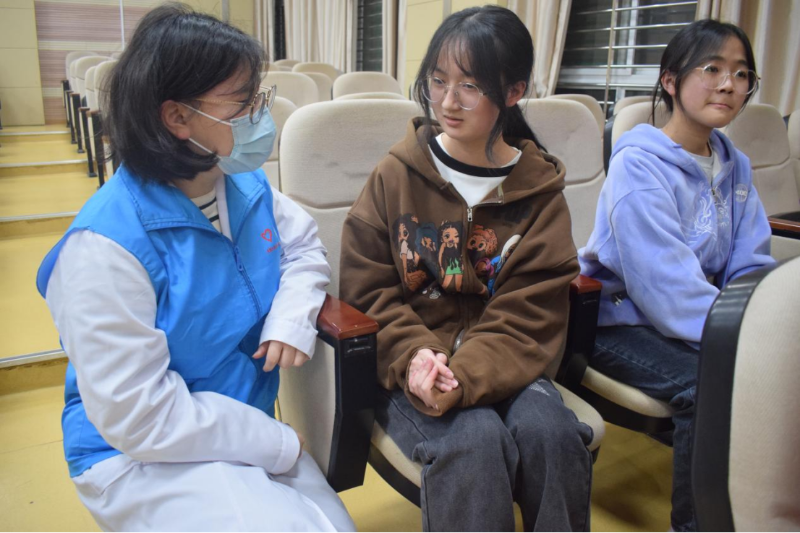 在活动最后,有两名志愿者通过医学的角度向大家进行心理疏导,询问大家的压力所在,并向同学们推荐好的放松方法,让同学们的心情得到舒缓。志愿者们也向同学们表达了殷切的鼓励与诚挚的祝福。