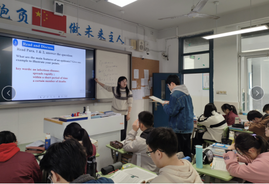 此次公开课围绕Human Biology话题展开,探讨“流行病”的历史与预防措施,与近三年的“新冠”话题契合度极高。金老师这节课从病毒的认知导入,激发学生的探索欲望和兴趣。通过快速阅读,让学生找出每段的关键词。然后通过合作探究的方式,让学生对文章结构进行概括,提升了学生的探索精神和批判性思维。