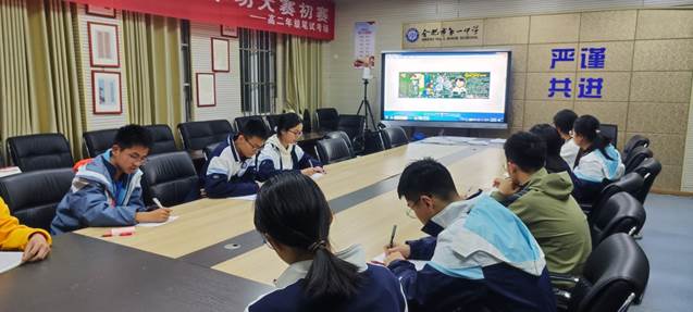 3月15日晚在高一年级部姚恺峰副主任和罗文帝老师组织下,铁军宣传部全体干事在A2年级部办公室参加黑板报评比活动,黑板报主题为“备战段一”。