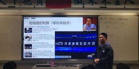 至于为什么以“抖音”为本次主题,与我班老师还有一段渊源。班主任王老师常在抖音上浏览新闻知识,并常常向我班同学科普,广受大家欢迎。因此我组成员灵光一现,本着学习借鉴上次我组班会成功案例经验,抓住“大家爱看爱听”要点,于是主题由此诞生。