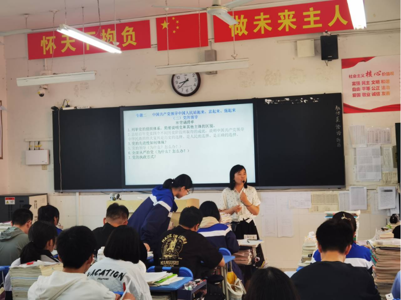 王老师设计的课前学案调动学生自主复习,提升学科知识归纳能力;精心设置试题,将时政与融入情境,学科知识问题化,课堂讲解风趣幽默,举重若轻,鼓励学生主动整理答题思路,从而引导学生规范答题,培养学生的学科思维能力。