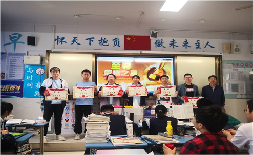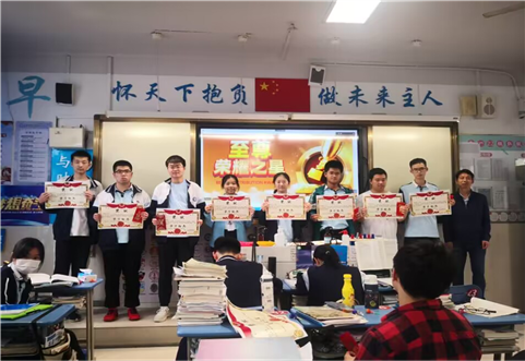 随即,各学科第一名,学习标兵,突出进步生,年级前400名,学习小组前三名依次上台领奖,副班长协助班主任给每位同学颁发了奖状和奖品。钟老师站在台上与各项优秀同学合影留念,以资鼓励。台上的他们个个笑容满面,自信与幸福洋溢在每一张青春的脸上。幸福是奋斗出来的,是的,他们用辛勤的汗水证明了自己,他们不骄不躁,静修其身,也必能以自信的姿态走向人生的幸福大道!