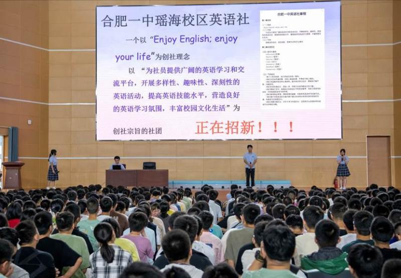 8月28日上午,学生干部组织推介和优秀社团推介在体育馆二楼展开。来自青年志愿者协会、英语社和时政社等的学长学姐们为新生详细地介绍了合肥一中社团的宗旨、入社团的方法和社团开展过的多彩活动,新生们反响十分热烈。