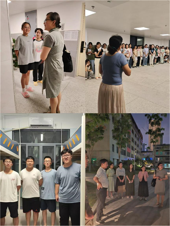 班会课后,全体住校学生在生活老师的带领下,回到各自楼层参与校园港湾教育活动。22:30,全体班主任在肖琼以及汪结义、王欢欢任的带领下,深入各楼层寝室,关注住校学生的适应情况和心理状态。他们与学生亲切谈心,了解他们的需求与困惑,同时与生活老师深入交流,共同为学生的健康成长营造良好的环境。