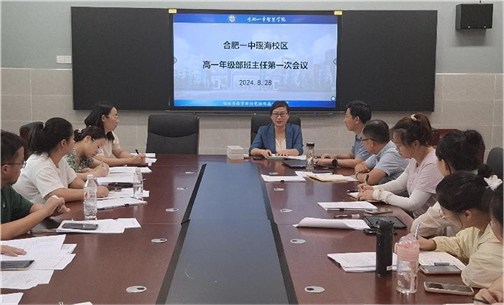 8月28日下午两点,合肥一中瑶海校区迎新准备工作会议在高一年级部会议室召开,会议由高一年级部主任汪结义主持,瑶海校区执行副校长肖琼、朱奇出席会议并讲话。