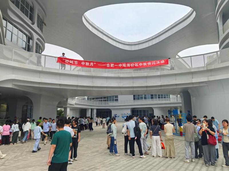 亭亭千万里,三五复秋中。时光流转,又到一年中秋。为让同学们度过一个印象深刻的中秋佳节,同时也为营造丰富多彩的校园文化氛围,展现合一学子积极阳光的青春风貌,9月14日,合肥一中瑶海校区团委在学校三叶草中庭举办了主题为“好时节、中秋月”的中秋快闪活动。万食社、郁文国学社、美术空间、灯谜社、校园广播站、行知小记者团等校园社团共同参与此次活动。
