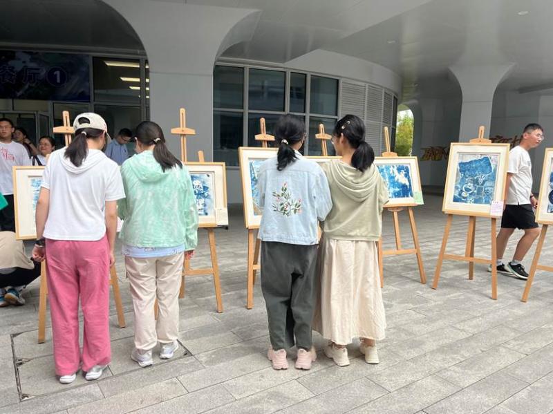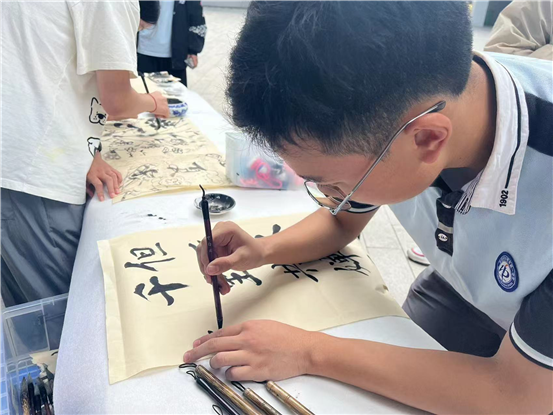 笔绘团圆景,墨染金秋梦。美术空间社还举办了一场小型书画艺术展。抬头看,同学们置身于画作中,移形换步,一步一景;低头间,美术社员俯身创作,研墨起笔,轻捷有力,就在这一竖一横中纵享山河,描绘草木,以笔端的点染神游无极,勾勒出节日的记忆。