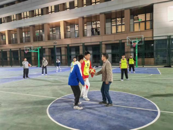 揭幕战在1号场地打响,由淝河校区高一年级部主任张典俊为首场比赛开球。两支队伍上演了一场精彩绝伦的对决。球员们身手矫健,运球如飞,传球如电,投篮精准,每一个动作都行云流水,令人目不暇接。观战的同学们加油声震耳欲聋,气氛热烈到了极点。