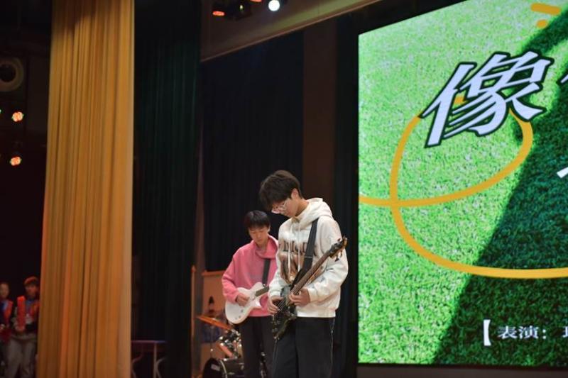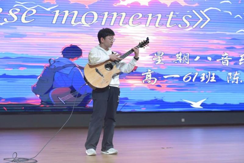 高一61班的陈梓浩同学用吉他弹奏出《These moments》的旋律,每一个音符都仿佛在诉说着生活中的点点滴滴,让观众们沉浸在悠扬的音乐海洋中,回味着那些难忘的瞬间。