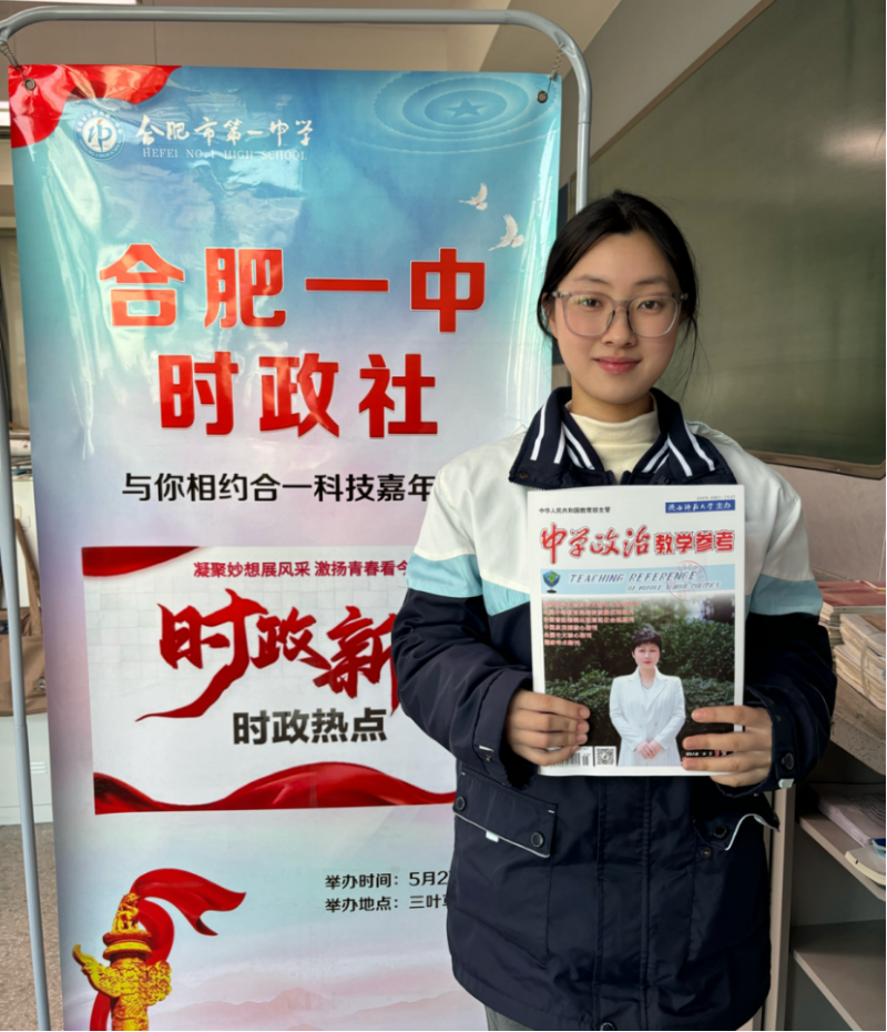 近日,合肥一中瑶海校区传来喜讯,岑佳琪同学的文章《赞歌》被全国中文核心期刊《中学政治教学参考》“习而时察”栏目录用,并在该栏目的12月第一周发表。