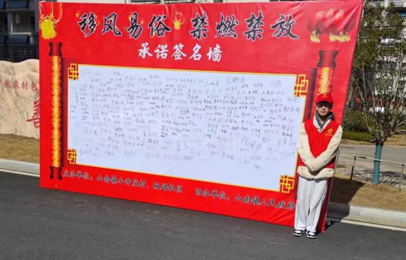 在“移风易俗,禁燃禁放”签名宣传活动中,卫平宽身着志愿者服装,手持宣传册,耐心向居民讲解禁燃禁放的重要性,并邀请他们在横幅上签名。他的热情与真诚感染了许多人,活动现场签名者络绎不绝,有效提升了公众的环保意识,共同守护蓝天白云。
