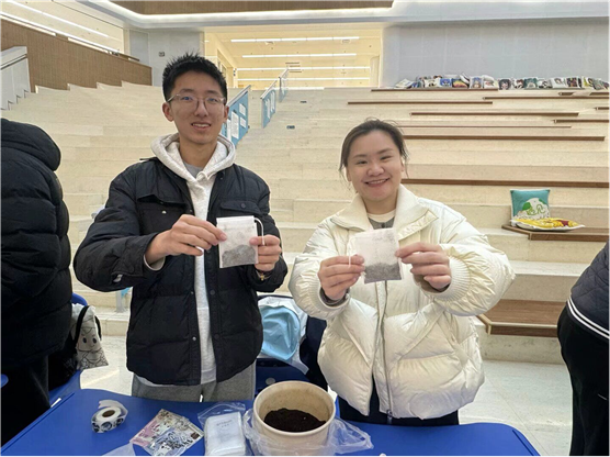天文社通过望远镜模型讲述光污染危害,将宇宙探索与环保责任紧密联结;智航科创社演示无人机操作,展现科技服务社会的潜力;趣味化学社以模拟污水处理实验揭示节水意义;百草园社团的“变废为宝”多肉领养活动前排起长队,咖啡渣与碎蛋壳制成的花盆承载绿色承诺;咖啡社则巧用废弃咖啡渣制作天然除味剂,让资源循环理念扎根学子心田。