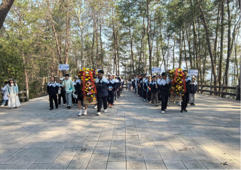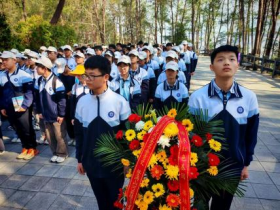 上午10时许,同学们抵达大别山烈士陵园。在庄严肃穆的革命烈士纪念碑前,师生列队肃立,敬献花篮,默哀致敬。陵园讲解员动情讲述了大别山地区革命先烈浴血奋战的英雄事迹,同学们认真聆听,不时记录。“革命先辈用生命换来了今天的和平,我们要珍惜当下,努力学习,报效祖国。”每个学生不禁都这样在心中坚定表示。