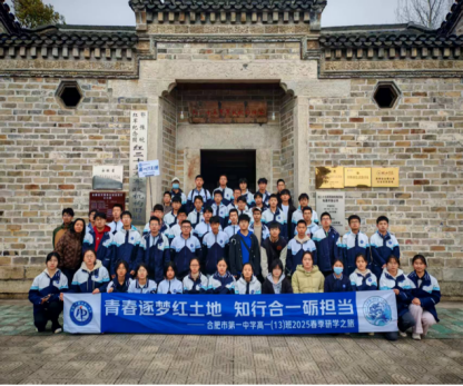2025年3月26日至28日,合肥一中滨湖校区高一13至16班全体师生奔赴红色皖西,开展为期三天的"行走的思政课"红色研学实践。同学们通过"历史沉浸+自然探索+劳动体验"的创新形式,在烈士陵园缅怀英烈、在军工博物馆解码强国密码等完成了一场跨越时空的青春对话。