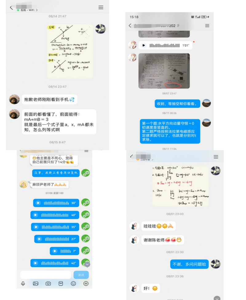 面对不便线下沟通的家庭,班主任们将关怀“搬”进云端。“老师,物理题的受力分析我还是没吃透”“老师,暑假计划总完不成,该怎么调整?”……无论是QQ上的即时答疑、视频电话里的一对一辅导,还是线上会议中的规划交流,班主任们始终24小时响应诉求:有的每天固定1小时在线“坐班”,集中解答学习规划难题;有的针对个别学生“量身定制”辅导,逐题分析试卷、梳理薄弱点;还有的定期分享优质学习资源与心理疏导文章,让关怀跨越屏幕、打破时空。