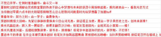 曹冉春:“当你跑过早晨六点半的太阳,疑惑假期怎么这么短,别问,问就是时光给梦想叠了加速buff。”评析:将“加速buff”这一游戏术语融入学习励志语境,新颖有趣且激励人心。