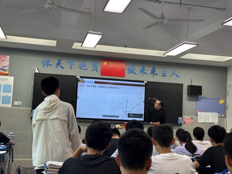 下午第一节课,数学组全体教师听取了李勇老师执教的《直线的倾斜角与斜率》公开课。李老师从数学学科特性出发,以问题驱动引导学生逐步理解直线倾斜角与斜率的概念内涵及相互关系。