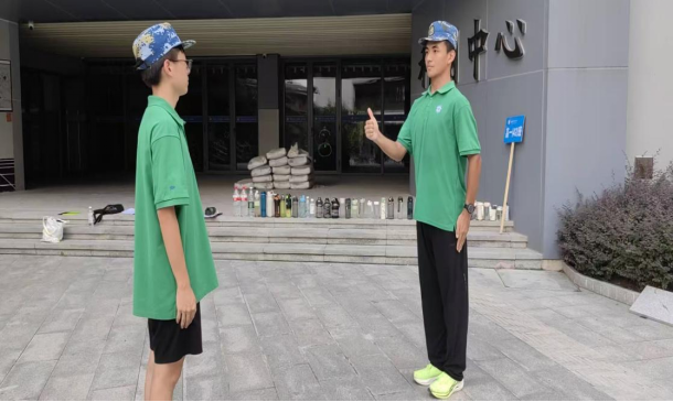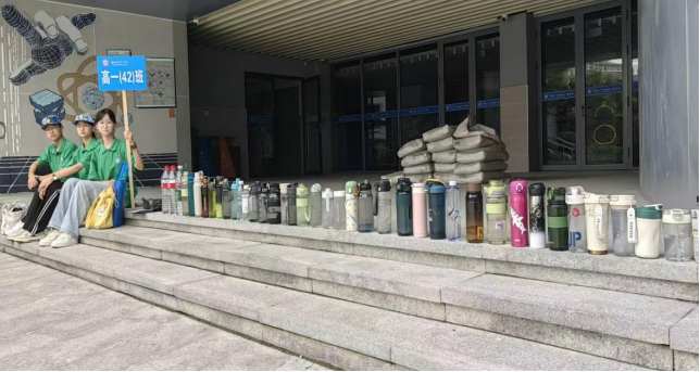当烈日炙烤着校园时,高一(42)班的训练场边,三名身穿军训服的学生坐在台阶上,身旁整整齐齐排列着数十个水杯,这是属于他们的特殊战场。因身体原因无法参与高强度训练,但他们选择以志愿者的身份守护方阵,休息哨声响起时,他们弯腰将温水递入同学手中。训练间隙,他们俯身收拾散落的物品,用布满水渍的手帕擦拭杯沿的污渍。
