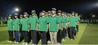 灯光在队列间投出森严阴影,将整齐划一的轮廓烙印在草地上。当教官口令如磐石落下,50位双足同时踏地,震得夜风发颤。这声响不是杂乱的喧嚣,而是千锤百炼后才有的金属相击般的铿锵韵律。当汗渍化作成长的勋章,当整齐的队列踏出青春的鼓点,这群少年已然擎起属于他们的青春旗帜。汗水羽化成空气中的碳氧,白云窥探着少年的胸膛。连同精神上的铁血脊梁,谱写属于少年的无二诗章。今朝迷彩染青春,明日星辰任驰骋。
