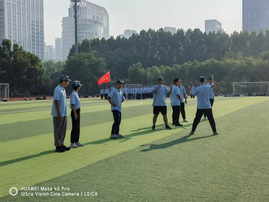 卓轩宇教官的身影始终穿梭在队伍之间:他步伐稳健,目光如炬,掠过每一个细节 —— 哪个同学的肩线不够平,哪个队列的间距稍显宽,都逃不过他的眼睛。口中的口令更是铿锵有力,如金石掷地,每一个字都带着不容置疑的坚定;示范动作时,他抬手、踢腿、转身,干脆利落如利剑出鞘,每一个姿态都堪称标准的范本。