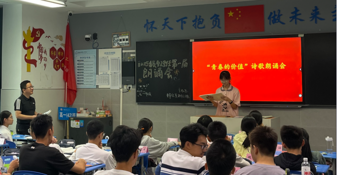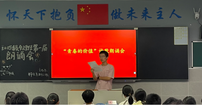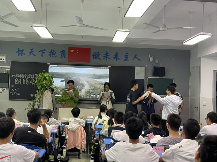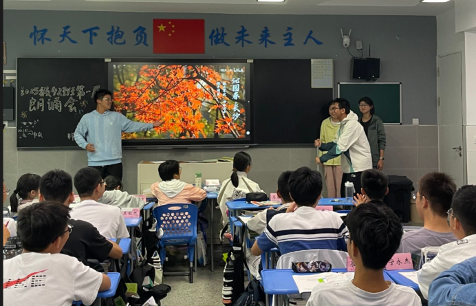 诗言志,歌咏言。于9月18日晚,在高一(42)班,一盏盏文学的灯火被深情点亮,一场诗词朗诵会徐徐启幕,带领在场每一位观众,完成了一场穿越时空、横贯中西的诗意漫游。