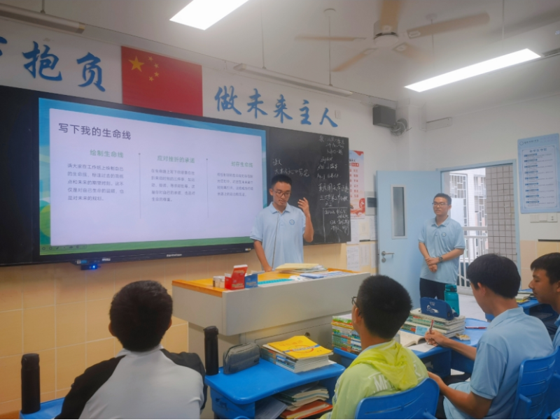 同学们还进行了一项非常有意义的活动——绘制生命线,回忆过去的重要时刻,并且展望未来,写下积极应对挫折的承诺。当我们将抽象的生命具象化,会更加认识到生命的丰富性和多彩性,尊重生命,热爱生命,努力创造人生价值,发掘个人潜力,尽显生命光彩。