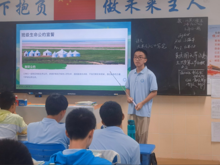 班会临近尾声,全体同学起立,进行了庄严的“生命契约”宣誓,以表达我们的尊重和敬畏。