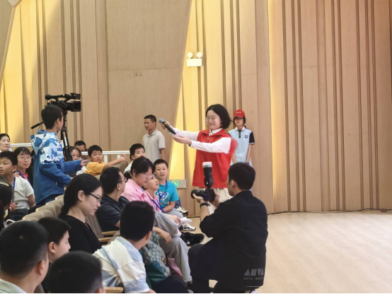 活动期间,合肥一中瑶海校区的志愿者们分工明确、热情饱满,以专业的服务为活动顺利开展保驾护航。在入场环节,他们主动上前引导观众,耐心指引有序就座,协助维持现场秩序,确保入场流程高效顺畅;进入互动问答环节时,志愿者们精准捕捉举手观众的位置,快速将话筒递至手中,保障观众与嘉宾的沟通互动无缝衔接;面对观众提出的科学疑问,志愿者们结合活动前准备的科普知识,积极协助解答,用通俗易懂的语言传递科学信息,成为连接科普内容与观众的 “桥梁”。