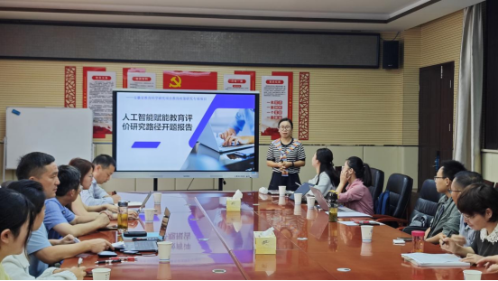 会议伊始,项目牵头人沐方华详细阐述了课题的研究背景、目标及预期成果,强调了人工智能技术在优化教育评价体系中的重要作用。随后课题组核心成员朱金凤老师做开题报告,详细阐述了课题的研究思路、方法、具体研究内容以及研究计划安排。她指出,本课题将聚焦人工智能技术在教育评价各个环节的应用,通过构建科学合理的评价模型,探索如何利用人工智能实现评价的精准化、个性化与动态化。同时,还将探索如何借助人工智能打破传统教育评价的时空限制,为学生和教师提供更具针对性的反馈与指导。