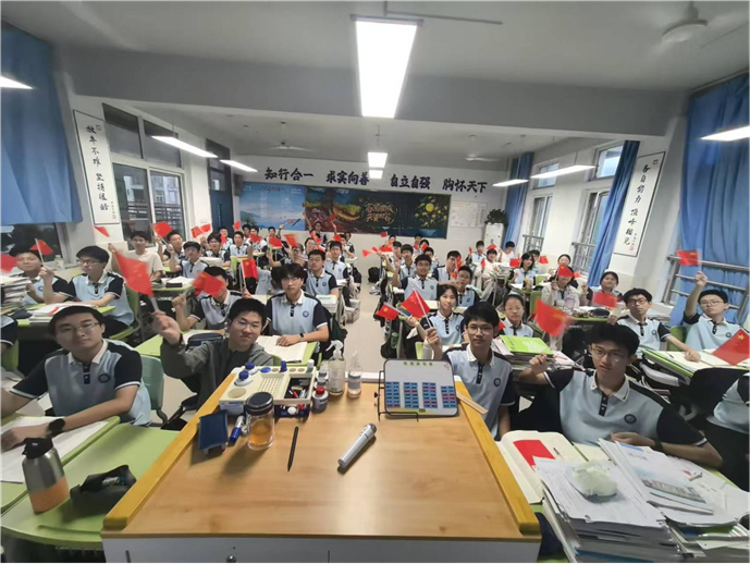 为热烈庆祝中华人民共和国成立76周年,进一步弘扬爱国主义精神,厚植学生家国情怀,高二(21)班9月29日精心策划并成功举办了一场别开生面的“我和国旗合个影”主题活动。活动通过集体合影、观影回顾、英雄事迹学习与感悟分享等多个环节,为全体同学带来了一场深刻而难忘的精神洗礼。