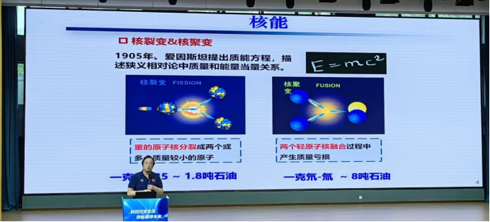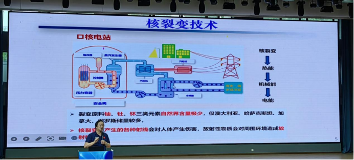 李院士开宗明义地指出,当前人类社会所依赖的化石能源,只是人类文明“短暂的一瞬间”。他引导同学们思考:“当化石能源枯竭,未来将如何维持?”他指出,核能是解决未来能源问题的关键所在。核能的利用主要有核裂变与核聚变两条技术路径。