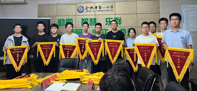 为了树立学习标杆,促进学生德智体美劳全面发展,形成班集体认同,合肥一中滨湖校区高二自治会对高二各班九月份各方面表现进行评比,在年级部与高二学生自治会的共同打分和评比下,一批优秀的班集体出线。2025年10月9日课活时间,年级部副主任李磊老师在高二年级会议室召开表彰大会,各班班长参加会议,对优秀典范进行表彰并授予流动红旗。