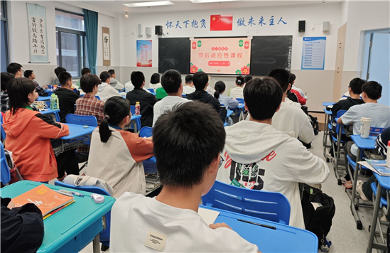 秋阳洒满校园,国庆长假带来的惬意余韵渐渐消散,高一年级的学子们带着假期的满满收获与崭新期待重返课堂。为助力全体高一新生迅速摆脱假期的松弛状态,高效适应高中学习节奏,筑牢新学期成长根基,10月11日,高一年级组织各班级开展“节后收心”主题班会,以多样形式为同学们的学习状态“复位赋能”。
