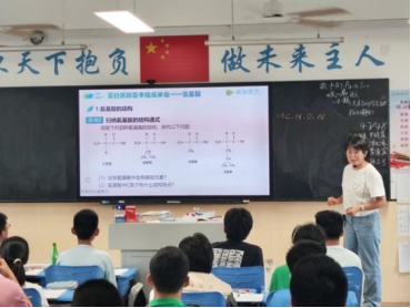 在课程的关键环节——学习氨基酸的分子结构之前,庞玉莹老师闪亮登场。她从化学学科的独特视角出发,为同学们带来了一场精彩的“预备课”。庞老师以清晰易懂的语言,深入浅出地讲解了碳、氢、氧、氮等原子形成稳定结构的成键原理,阐述了共价键的特点以及官能团的基本概念。这部分内容的补充,如同为学生们搭建了一座从宏观生命现象通向微观分子世界的桥梁,让他们不仅“知其然”,更能“知其所以然”。