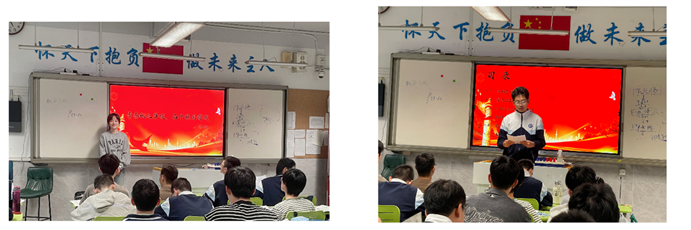 班会伊始,组长唐沛然对此次活动做了总体介绍,接着主持人陈立轩带领同学们回顾了中国共产党成立以来的奋斗历程,从烽火岁月里的浴血奋战到新时代的辉煌成就,一个个震撼人心的画面 、一段段感人至深的故事,让同学们深刻感受到国家发展的艰辛与不易,也见证了无数先辈为实现民族复兴而付出的努力与牺牲。