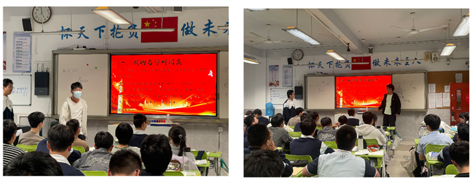 在“榜样力量,照亮前行之路”环节,章靖天同学积极分享了自己心中的时代楷模。有袁隆平院士一生致力于杂交水稻研究,让中国人端牢“饭碗”的伟大事迹;有航天工作者们克服重重困难,将“神舟”“嫦娥”送上太空的拼搏精神;还有抗疫一线医护人员逆行出征、守护生命的感人故事。这些榜样的力量,如同一盏盏明灯,照亮了同学们前行的道路,激励着大家以实际行动向榜样看齐。