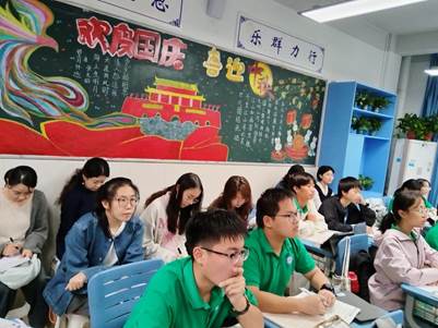 阅读课过程中,董老师的这堂公开课打破了传统课堂的局限,让学生在互动中不仅掌握了英语知识点,更树立了积极的人生态度。学生们上课积极互动,认真领会董老师讲解的知识点。董老师激励学子们从“心”出发,成为自己人生的设计师和主角。