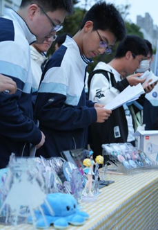 漫研社副社长闫汝成同学带领卢祺奥、刘庭风两位成员布置了漫研社摊位,为课活时的招新活动进行准备。招新期间,问答抽奖环节尤其受到同学们的喜爱,现场持续有大量学生排队答题。闫汝成同学一直坚守招新一线,签收入社申请表,回答新社员提出的种种问题,卢祺奥和刘庭风两位同学也一直做好后勤保障工作,积极进行宣传和现场的秩序维护。最终漫研社新招入社员108人,本次招新的圆满落幕,不仅为动漫社注入了新鲜血液,更展现了社团的凝聚力与活力。高二(21)班同学们在其中的全方位付出,既是对社团热爱的践行,也是对 “服务成员、搭建同好交流平台” 初心的坚守。