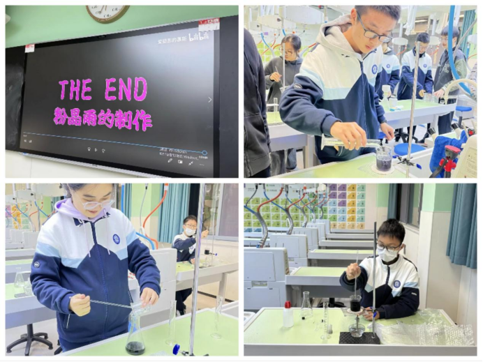 活动伊始,王老师通过视频详细讲解实验原理——利用硫酸铬钾与钼酸铵发生复分解反应,生成铬酸钼,一种在弱酸性条件下呈现粉色的晶体。刘老师以专业视角强调了实验中的安全注意事项。