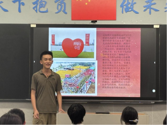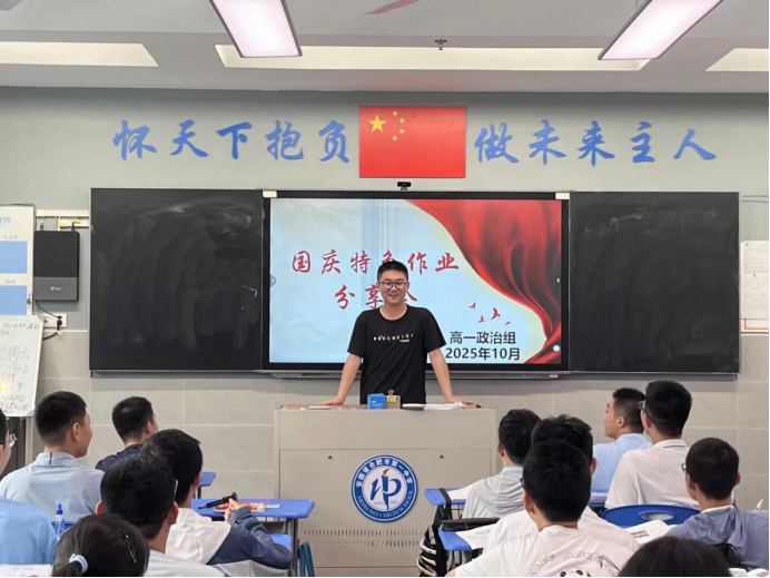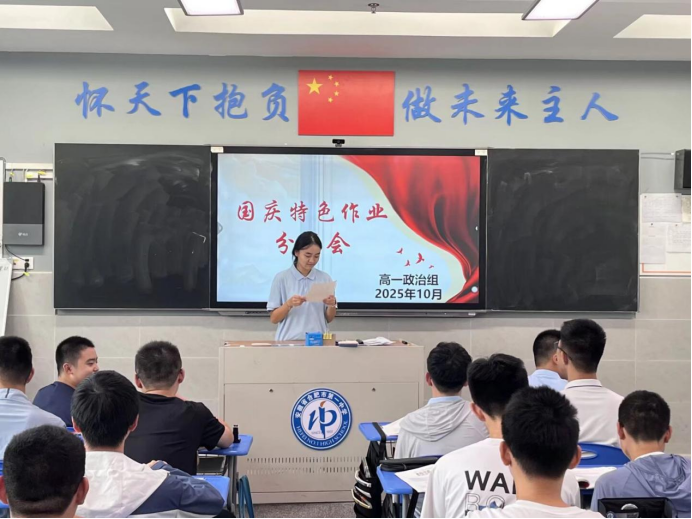 为热烈庆祝中华人民共和国成立76周年,扎实推进爱国主义教育走深走实,切实增强学生对国家的认同感与自豪感,合肥一中瑶海校区高一政治组在国庆节前夕匠心打造“青春献礼·家国同行”主题实践作业。该作业以沉浸式社会体验为特色,引领学生深入生活场景,真切感受国家发展取得的辉煌成就,在实践参与中厚植家国情怀。作业成果于2025年10月9日至16日在课堂进行精彩展示。
