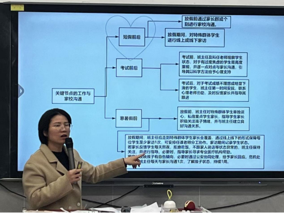 针对关键时间节点,如短假前后、寒暑假、考试前后等阶段的学生安全防护要点,培训进行了重点提示。同时,详细解读了学生休学与复学过程的规范操作流程,为班主任处理相关事务提供了明确指引。此外,培训还特别分享了针对不同工作场景的家校沟通策略与实用话术,助力班主任更有效地开展家校合作,凝聚育人合力。