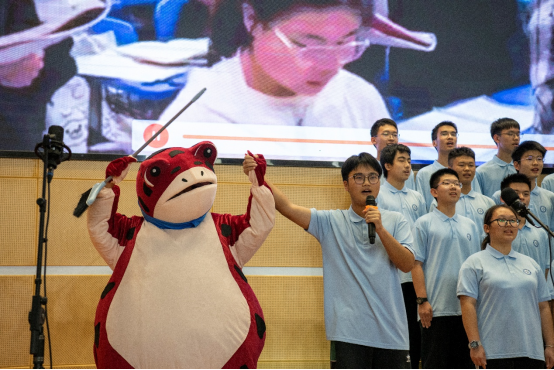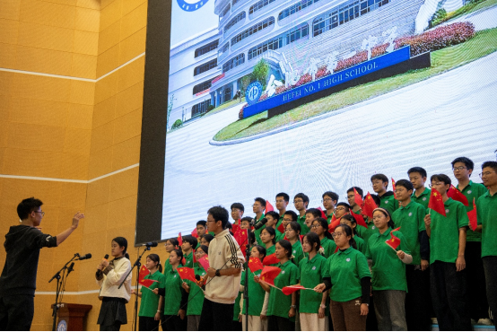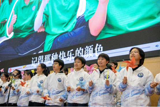活动现场,封安保深情讲述了校歌背后的故事与精神内涵。他特别聚焦“江河湖海,桃李盛放”的宏大愿景,指出这句话恰是合肥一中教育集团在新时代砥砺前行、深耕教育的生动映照。尤光雷也对同学们满怀期许,他鼓励大家以青春之声、嘹亮歌声,唱出对校史的敬意、对生活的热忱,以及对未来的无限向往。