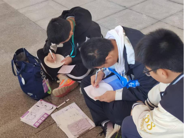 活动中,合肥一中教育集团党委委员、副校长尤光雷、合肥一中长江路校区执行副校长汪义超等校领导到场指导,并参与到同学们的创作互动中。尤校长驻足于多个创作区域,认真观看同学们的绘制过程,不时亲切交流,了解他们的创作灵感与心理感受。