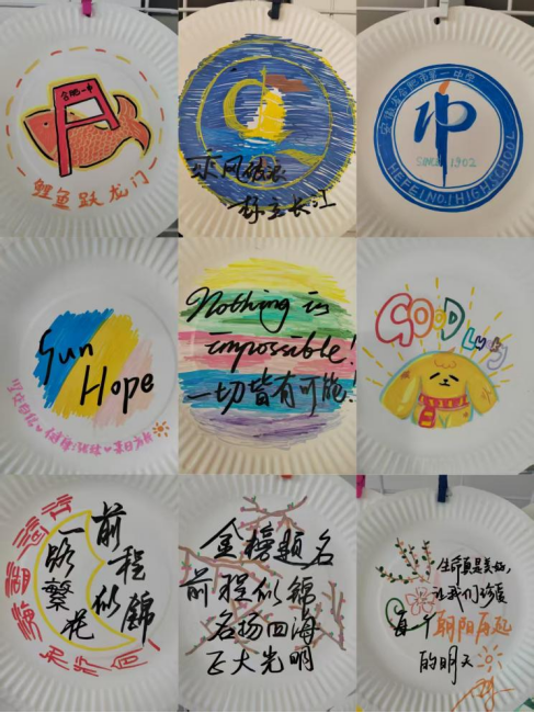 活动现场还设置了集中展示区,数十件“爱我宣言盘”汇聚成一片“心光之墙”。每一只盘子都是一个独特的世界,色彩斑斓、言语真诚,共同构成了合肥一中校园里一道温暖而有力的心理风景。