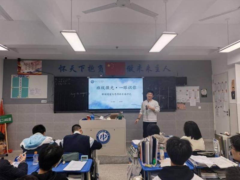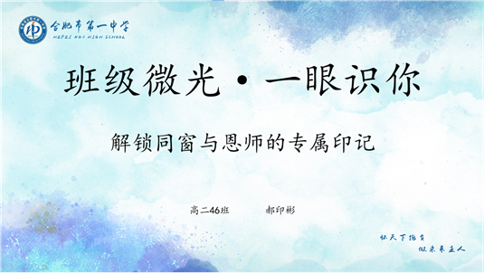 11 月 3 日,瑶海校区高二 46 班的教室里暖意融融,阳光透过窗户洒在课桌上,映着同学们一张张期待的脸庞。一场以 “班级微光·一眼识你” 为主题的班会课在此拉开帷幕。彼时,距离班级分班已过去两个月,虽经过这段时间的相处,但部分同学之间仍存在些许陌生感。为了让同学们进一步熟悉彼此,增进同窗情谊,同时搭建师生间情感沟通的桥梁,本次班会特意以小组 PK 的形式展开,由高二 46 班团支书郝印彬同学主持。在他清晰且富有感染力的引导下,每一组的分享都如同点点微光,汇聚成班级里温暖而浓厚的情谊。