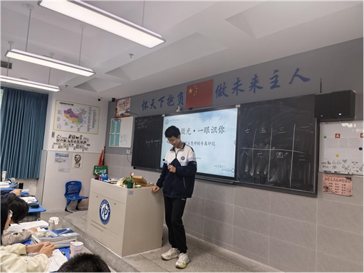 第七组的杨烨坤则用幽默的语言,为大家带来了一场精彩的分享。他生动描述了自己眼中有趣的老师和班里关系要好的同学间的故事,那些充满欢乐与温暖的瞬间,让整个班级的氛围变得更加轻松愉悦。