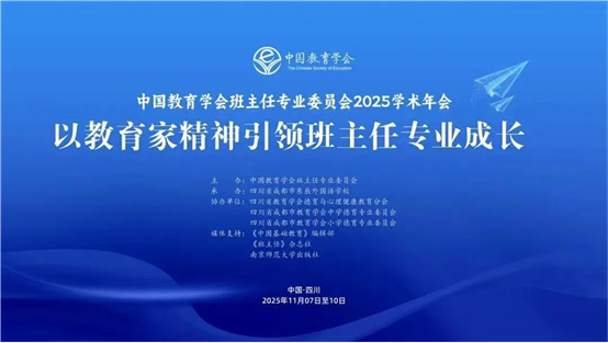 2025年11月7日至9日,中国教育学会班主任专业委员会2025年学术年会在成都温江区东辰外国语学校隆重举行并圆满闭幕。合肥一中高度重视此次全国性的班主任专业发展盛会,派出了一支由滨湖校区政教处主任张荣才、瑶海校区政教处副主任赵燕领队,覆盖“江河湖海”四大校区、九个年级的11位班主任代表组成的精锐团队赴蓉学习,与全国1700余名教育工作者共话“以教育家精神引领班主任专业成长”的时代命题。