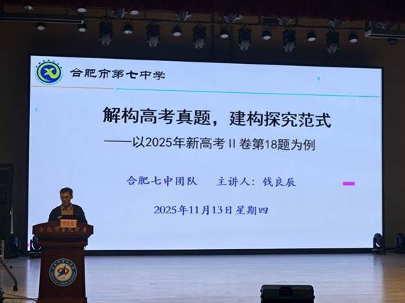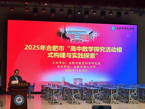 为深化新课标背景下高中数学教学改革,探索探究式教学的有效路径,合肥一中淝河校区数学组教师于2025年11月13日赴合肥市第九中学,参与以“高中数学探究活动模式构建和实践探索”为主题的教学研讨活动。本次活动汇聚多校数学教学骨干,通过课堂展示、说课分享、专家点评、真题解构等多元形式,搭建了互学互鉴的优质平台。