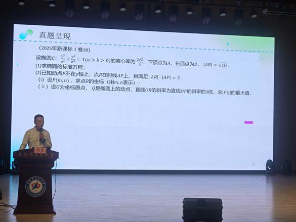 在经验分享环节,合肥七中的钱良辰老师与科大附中的刘勇老师带来“解构高考真题,建构探究范式”专题分享。两位老师聚焦2025年新高考全国一卷、二卷数学第18题,从真题呈现、命题立意分析、探究方向拓展、教学范式建构四个维度,深入解读了高考对探究能力的考查要求,展示了如何将高考真题转化为课堂探究素材,实现“以考促教、以教提质”的教学闭环。分享内容紧密联系教学实际与高考导向,为在场教师搭建了“探究式教学与高考衔接”的实践桥梁。