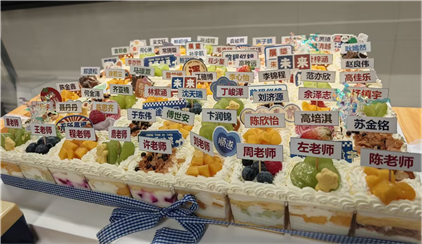 总结环节结束后,陈老师为大家送上意外惊喜——一块定制大蛋糕。当蛋糕被缓缓端进教室,现场瞬间响起热烈欢呼。同学们有序分工,切分蛋糕、分享美味,教室里满是欢声笑语。甜香四溢的蛋糕不仅承载着老师对大家的肯定与期许,更见证了52颗心的紧密相连,让班级凝聚力在分享中进一步升华。